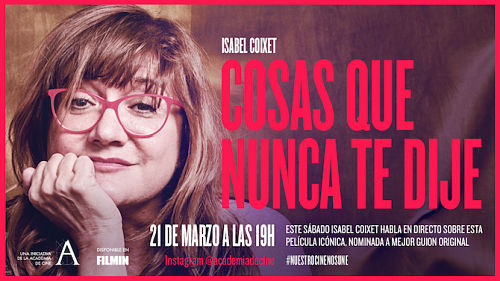 Recibimos nota de prensa de la Academia de Cine Española donde nos comunican la nueva invitada, Isabel Coixet, que el sábado 21 de marzo, a las 19 horas, a través del Instagram de la Academia, contestará preguntas sobre su película Cosas que nunca te dije. Esta nueva entrega de #NuestroCineNosUne continuará con otros cineastas, que se irán anunciando oportunamente. A continuación tienes la nota de prensa íntegra.