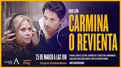 Continúan los encuentros online con cineastas españoles, que la Academia de Cine y su Fundación organizan, para que todos los aficionados al cine puedan preguntar a través del Instagram de la entidad. Esta semana estarán Paco León, el miércoles 25 (a las 19 horas) y Juan Antonio Bayona, el viernes 27 (a las 19 horas). El primero contestará a los internautas sus preguntas sobre Carmina o revienta, el segundo sobre su amplia carrera. A continuación tienes el comunicado oficial íntegro.