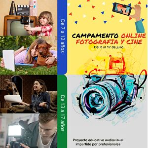 – Campamento online de fotografía y cine: Pensado para poder disfrutar de las distintas disciplinas artísticas audiovisuales en casa, potenciando la creatividad e imaginación de niños y jóvenes a través de la fotografía y el cine sacando el máximo partido a nuestras cámaras móviles o réflex. Usaremos la tecnología para comunicarnos y hacer posible el trabajo de grupo a distancia, pero las actividades serán prácticas a desarrollar en el hogar.