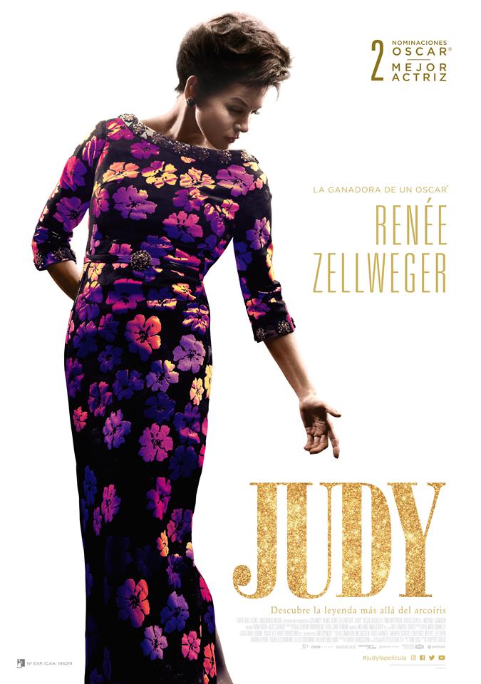 Sinopsis: Durante el invierno de 1968, treinta años después del estreno de El mago de Oz, la leyenda Judy Garland (Renée Zellweger) llega a Londres para dar una serie de conciertos. Las entradas se agotan en cuestión de días a pesar de haber visto su voz y su fuerza mermadas. Mientras Judy se prepara para subir al escenario vuelven a ella los fantasmas que la atormentaron durante su juventud en Hollywood. A sus 47 años, se enfrenta en este viaje a las inseguridades que la acompañaron desde su debut, pero esta vez vislumbra una meta firme: regresar a casa con su familia para encontrar el equilibrio.