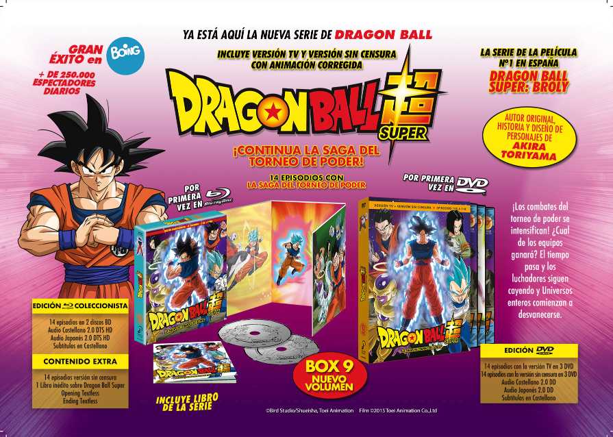 Blu-ray: Edición coleccionista. 14 episodios en 2 discos. Audios en castellano y japonés. Subtítulos en castellano. Contenido extra: 14 episodios versión sin censura. 1 libro inédito sobre Dragon Ball Super. Opening Textless. Ending Textless.