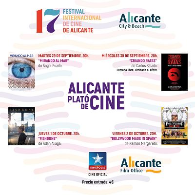 Las películas de “Alicante Cinema”, se proyectarán en los cines Kinépolis en el Centro Comercial Plaza Mar y tendrán un precio de 4 euros (excepto el día 30 de septiembre, que será libre).