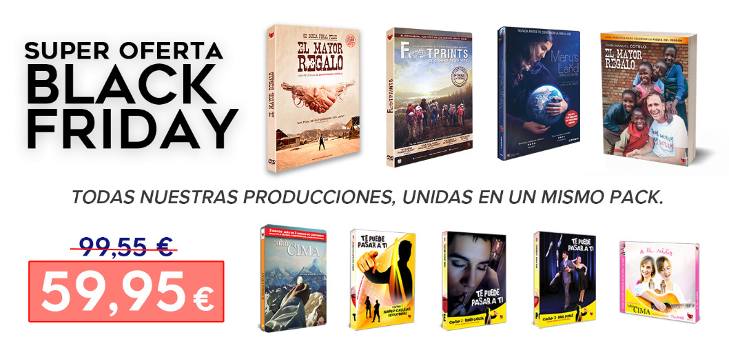 La Fundación Infinito + 1, que produce y distribuye películas, videos on-line, música, libros, teatro, cursos de formación… bajo el lema ‘NUNCA, NADIE, SOLO’, nos presenta unas propuestas muy interesantes de cara a la Navidad, para que aprovechando el Black Friday, puedas regalar o regalarte los regalos para tus seres queridos o para ti. El primer pack, llamado SUPERPACK INFINITO+1, contiene todas sus producciones, a un precio muy rebajado. El segundo pack, denominado SUPER PACK DEL PERDÓN, contiene (DVD + Libro de EL MAYOR REGALO + camiseta + taza), a un precio muy bueno. Además, también encontrarás descuentos en diversos DVDs, visionados online y otros productos. Puedes consultar estas y otras promociones en Infinito + 1