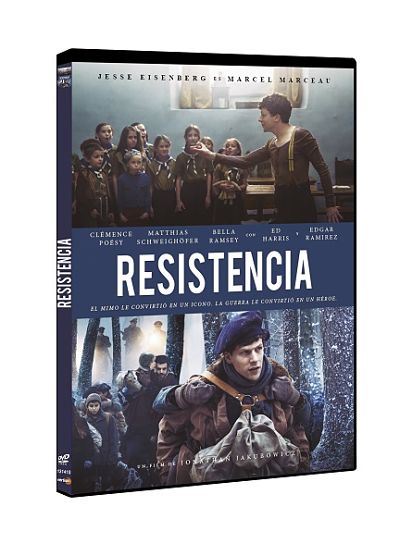 Desde el próximo 22 de enero Vértigo Films pondrá a la venta, en DVD y Blu-ray, la película Resistencia. Una historia, basada en hechos reales, que narra unos episodios ocurridos al famoso mimo Marcel Marceau, durante la Segunda Guerra Mundial. Dirigida por Jonathan Jakubowicz, está protagonizada por Jesse Eisenberg.