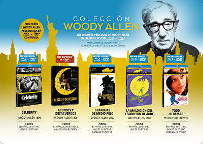 Ya se encuentran a la venta los nuevos lanzamientos de SelectaVisión tanto en DVD como en Blu-ray. Una escogida selección de películas del mítico director, actor y guionista Woody Allen, que complementan las lanzadas el pasado mes de enero, y con la que los aficionados pueden completar su colección. Esta vez, podemos encontrar títulos tan conocidos como Granujas de medio pelo o Acordes y desacuerdos, entre otros.