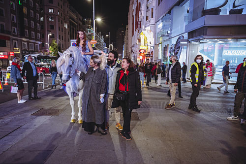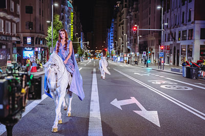 Se encuentra en pleno rodaje la nueva película de la directora Chus Gutiérrez, De Caperucita a Loba, adaptación al cine de la exitosa obra de teatro de igual título, que es una visión femenina de las relaciones amorosas. Está protagonizada por Marta González de Vega, en su primer papel protagonista, a la que acompañan un nutrido grupo de actores de comedia Berto Romero, David Guapo, José Mota, Antonio Resines, Elena Irureta, y los reconocidos actores peruanos Melania Urbina y Marco Zunino, entre otros, así como Martita de Graná. Para la filmación de ciertas escenas, que tienen que ver con unicornios y con las que ilustramos la noticia, se cortó la Gran Vía madrileña lo que provoco mucha espectación en viandantes y vecimos.