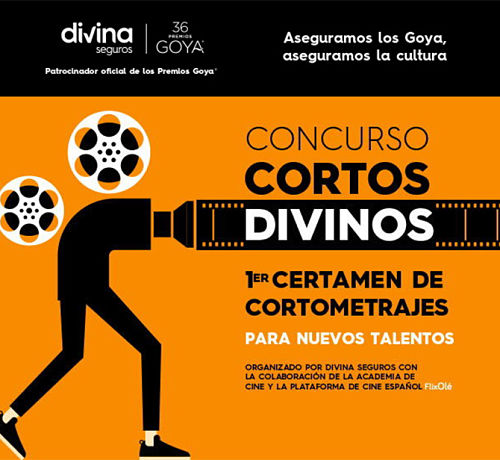 Divina Seguros, patrocinador oficial de los Premios Goya, lanza el concurso «Cortos Divinos». Primer certamen de cortometrajes para nuevos talentos, cuyo objetivo es reconocer y premiar el talento de las promesas del cine español, así como poner en valor la pieza del corto en la industria del cine. La iniciativa se ha dado a conocer este miércoles, en un acto celebrado en la Academia de Cine que ha contado con la asistencia de Mariano Barroso, presidente de la institución, y Armando Nieto, presidente de Divina Seguros.