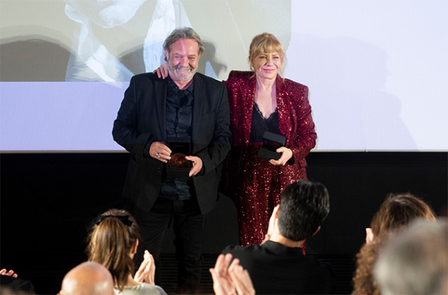 Rodeados de familiares, amigos y compañeros de uno y otro lado del Atlántico -Malena Alterio, Imanol Arias, Marisa Paredes, Javier Godino, David Andrade, Luisa Mayol, Cecilia Suaréz, Vladimir Cruz, Daniel Freire, Rubén Cortada, Juan Carlos Corazza, Ileana Wilson, Luis Jaspe, Amaruk Kayshapanta, Linda Forero, Arlette Torres y Alejandro Marzal, entre otros–, Roth y Perugorría vieron emocionados el vídeo que recogía parte de los numerosos intérpretes latinoamericanos que forman parte de la historia de nuestro cine, desde Silvia Pinal, María Félix y Arturo de Córdova a Ricardo Darín, Gael García Bernal, Juana Acosta y Angie Cepeda, y las palabras que les dedicaron Manuel Gutiérrez Aragón, Gerardo Herrero y Ángeles González Sinde.
