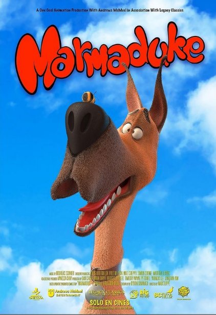 Sinopsis: Marmaduke es un adorable “Gran Danés”, pero por mucho que sus dueños lo intentan, no pueden evitar que se meta en problemas. Un famoso adiestrador de perros acepta el desafío de convertir a Marmaduke en el ganador del Campeonato Mundial. Así comienza una gran aventura.