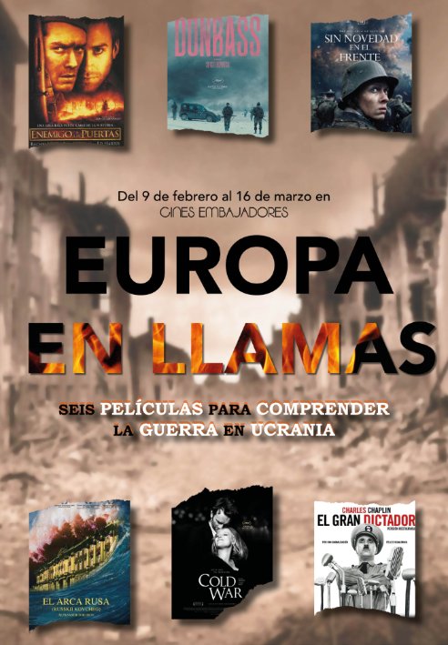 Los Cines Embajadores, de Madrid, han organizado un ciclo de películas que ayudarán a entender mejor la Guerra de Ucrania, denominado ‘Europa en llamas’, a través de seis largometrajes, con sus correspondientes coloquios con expertos en la materia, que se van a proyectar desde esta misma semana. El próximo día 9 de febrero, jueves, se podrá ver Enemigo a las puertas, de Jean-Jacques Annaud.