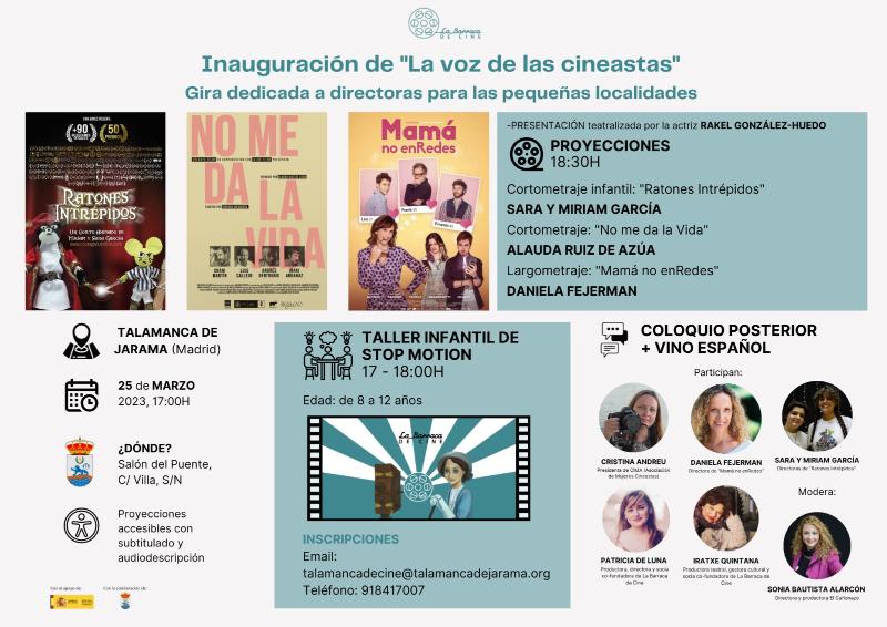 El próximo sábado, 25 de marzo, La barraca de cine inicia su gira 2023 en el municipio de Talamanca de Jarama (Madrid) con la proyección de la película Mamá no enRedes, de Daniela Fejerman. Con este título también se inaugura otro de sus ciclos estrella para este año: «La voz de las cineastas», donde diferentes mujeres vinculadas con el cine participarán en coloquios y actividades relacionadas con las películas que se proyecten en cada localidad.