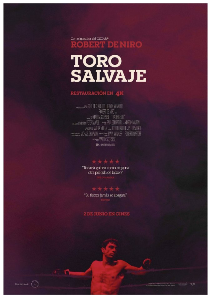 Sinopsis: De Niro interpreta a Jake La Motta, un boxeador cuyas complejidades psicológicas y sexuales desembocan en violencia tanto dentro como fuera del cuadrilátero. Joe Pesci y Cathy Moriarty son los coprotagonistas.