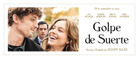 Los amigos de la distribuidora Wanda Visión nos han enviado el tráiler (en VOSE) de Golpe de suerte, la nueva película que ha dirigido y escrito Woody Allen. Protagonizada por Lou de Laâge, Valérie Lemercier, Melvil Poupaud y Niels Schneider, en los principales papeles, nos ofrece una historia típica de Allen, donde las casualidades juegan mucho en la trama.