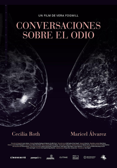 Sinopsis: Conversaciones sobre el odio es un thriller psicológico que narra en tiempo real, el último encuentro de dos mujeres. En esta conversación íntima y profunda se confrontan la mirada sobre la maternidad, la amistad y la forma de afrontar la enfermedad. Débora (Cecilia Roth) es una representante de artistas manipuladora que poco a poco desata su odio contra Déborah, una actriz intelectual (Maricel Álvarez). Un manifiesto contra la discriminación de la gente tóxica; contra la idea de que las personas se enferman por su propia culpa y se curan si quieren; contra el marketing de la venta y el consumo irreal de la felicidad y el bienestar. Una película que sustenta el test de Bechdel: dos mujeres, una conversación donde no se habla de hombres.