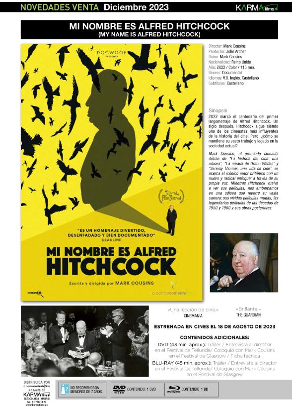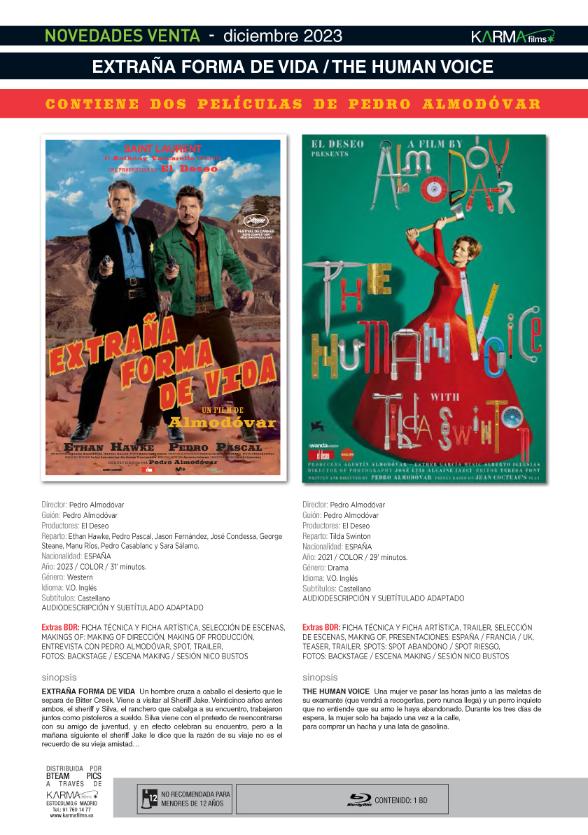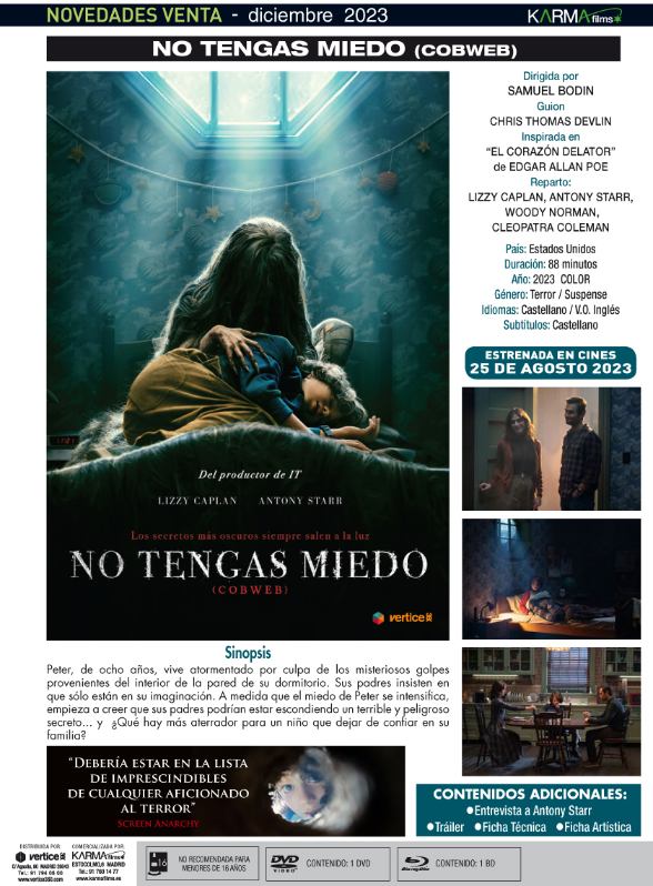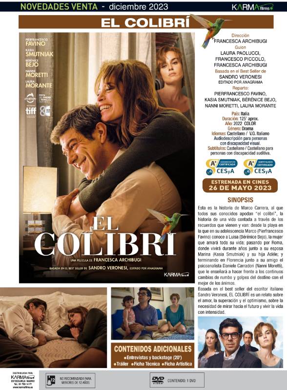 Ya conocemos los lanzamientos, en venta, que Karma Films Video ha preparado para este mes. Encontramos una variada selección de películas en Blu-ray y/o en DVD, con la que los amantes del séptimo arte pueden completar sus colecciones. Además, y para complementar las películas, los DVD y Blu-ray llevan unos contenidos adicionales, que hacen más interesante adquirir cualquiera de estos títulos. En esta ocasión, entre los lanzamientos podemos encontrar No tengas miedo y El colibrí.
