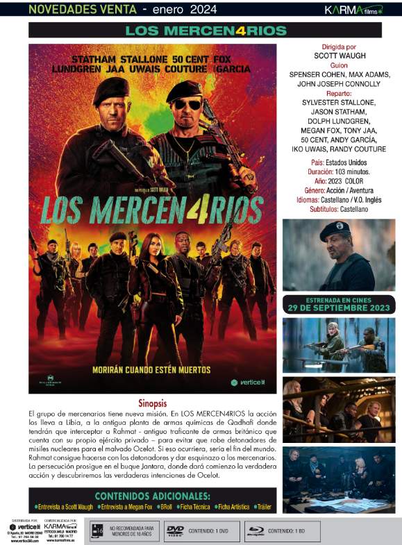 Hemos recibido los lanzamientos, en venta, que Karma Films Video ha sacado al mercado. Tenemos una variada selección de películas en Blu-ray y/o en DVD, con la que los amantes del séptimo arte pueden completar sus colecciones. Además, y para complementar las películas, los DVD y Blu-ray llevan unos contenidos adicionales, que hacen más interesante adquirir cualquiera de estos títulos. En esta ocasión, entre los lanzamientos podemos encontrar La manzana de oro y Los mercenarios.