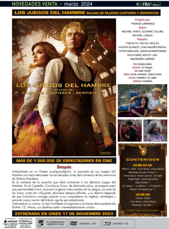 Ya conocemos los lanzamientos, en venta, que Karma Films Video ha sacado al mercado este mes. Encontramos diferentes películas, en Blu-ray y/o en DVD, para que puedan completar sus colecciones los amantes del cine en general, y los cinéfilos en particular. Además, como siempre, para complementar las películas, los DVD y Blu-ray llevan unos contenidos adicionales, que hacen más interesante adquirir cualquiera de estos títulos. En esta ocasión, entre los lanzamientos podemos encontrar ¡Salta! y Los juegos del hambre. Balada de pájaros cantores y serpientes.