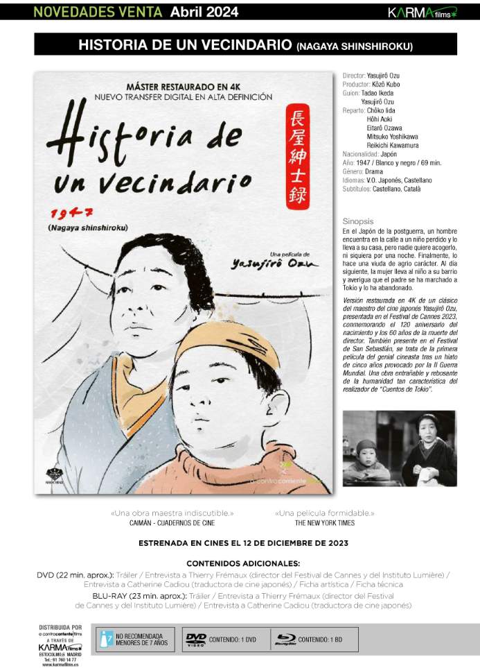 Ya sabemos que lanzamientos, en venta, ha sacado al mercado Karma Films Video este mes. Encontramos diferentes películas, en Blu-ray y/o en DVD, para que puedan completar sus colecciones los amantes del cine en general, y los cinéfilos en particular. Además, como siempre, para complementar las películas, los DVD y Blu-ray llevan unos contenidos adicionales, que hacen más interesante adquirir cualquiera de estos títulos. En esta ocasión, entre los lanzamientos podemos encontrar Un amor y el clásico Historia de un vecindario.