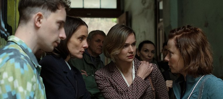 Sinopsis: Los inquilinos de un céntrico edificio berlinés, ya sometidos a una gran tensión por los manejos de la inmobiliaria que posee el edificio, se encuentran una mañana, sin explicación ninguna, encerrados y rodeados por la policía. Nadie puede entrar ni salir. Sin información, los residentes empiezan a especular. Primero, suponen que puede haber una bomba colocada en la puerta de entrada. Luego se difunde el rumor de que un criminal se esconde en el patio. El miedo se convierte en inseguridad y a su vez en agresión. Los prejuicios provocan la polarización. Viejos conflictos vuelven a salir a la luz y los residentes empiezan a denunciarse unos a otros. En esta situación de peligro existencial, pierden su máscara de decencia humana. Empiezan a mostrar sus verdaderas caras y cada uno persigue sus propios intereses en este juego de poder y capitalismo.