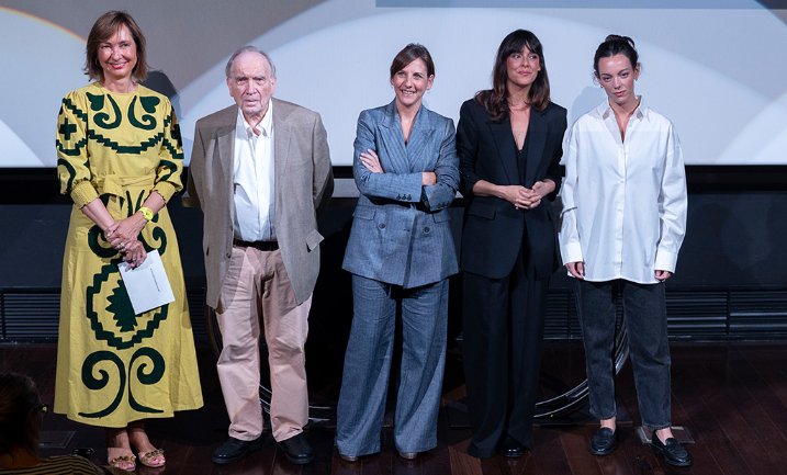 Las tres actrices encargadas de leer esta preselección de tres películas que representan a España en los próximos premios Oscar®, Malena Alterio, Victoria Luengo y Belén Cuesta, han estado acompañadas por el presidente de la Academia de Cine Española, Fernando Méndez-Leite y la notaria Eva Fernández Medina.