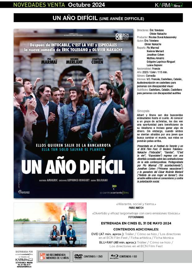 Ya se encuentran a disposición del público, en venta, los lanzamientos que Karma Films Video ha lanzado al mercado para este mes, tanto en Blu-ray y/o DVD. Diferentes títulos para que los cinéfilos puedan completar sus colecciones o adquirir esa película estaban buscando. Además, como siempre, para complementar las películas, los DVD y Blu-ray llevan unos contenidos adicionales, que hacen más interesante adquirir cualquiera de estas películas. En esta ocasión, entre los lanzamientos podemos encontrar Cerrar los ojos y Un año difícil.