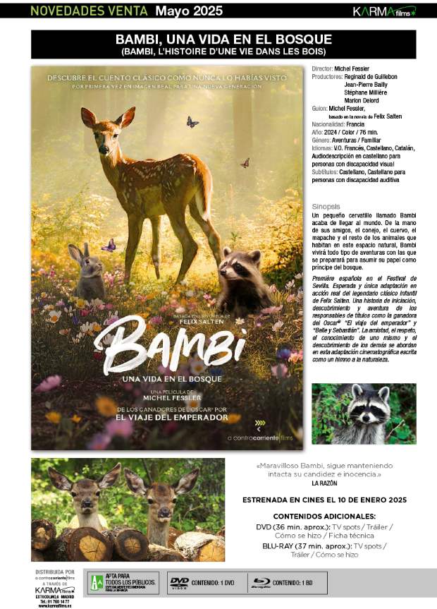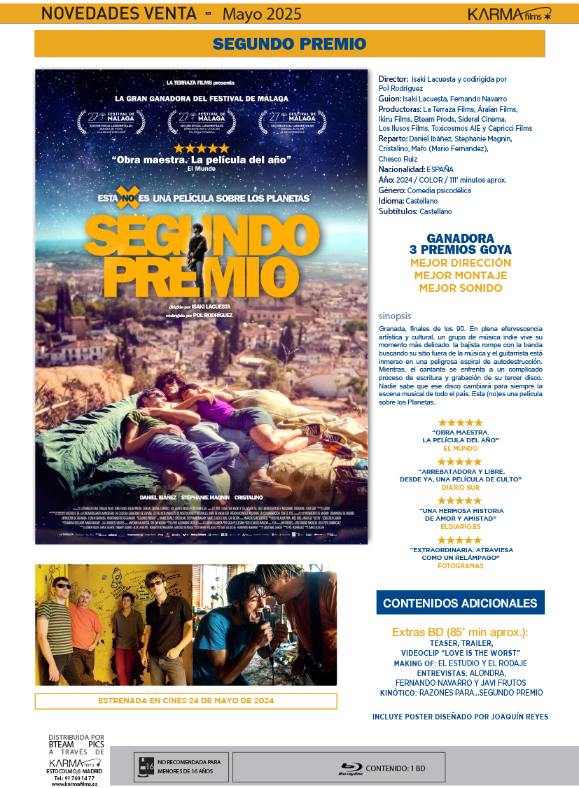 Ya se encuentran, en venta, los lanzamientos que Karma Films Video ha sacado al mercado este mes, tanto en Blu-ray y/o DVD. Diferentes títulos para que los cinéfilos puedan completar sus colecciones o adquirir esa película que estaban buscando. Además, como siempre, para complementar las películas, los DVD y Blu-ray llevan unos contenidos adicionales, que hacen más interesante adquirir cualquiera de estas películas. En esta ocasión, entre los lanzamientos, podemos encontrar Segundo premio (ganadora de tres Premios Goya) y Bambi (una nueva revisión de la mítica película de animación de Disney).