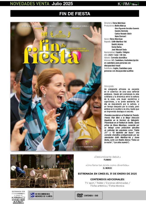 Ya se encuentran disponibles, en venta, los lanzamientos que Karma Films Video ha lanzado al mercado este mes, tanto en Blu-ray y/o DVD. Títulos variados para que los cinéfilos puedan completar sus colecciones o adquirir esa película que estaban buscando. Además, como siempre para complementar las películas, los DVD y Blu-ray llevan unos contenidos adicionales, que hacen más interesante adquirir cualquiera de estas películas. En esta ocasión, entre los lanzamientos, podemos encontrar el clásico Rififí (de Jules Dassin) y la española Fin de fiesta (de Elena Manrique).