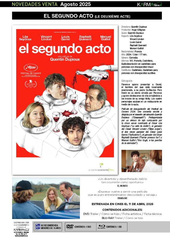 Ya están disponibles, en venta, los lanzamientos que Karma Films Video ha sacado al mercado este mes, tanto en Blu-ray y/o DVD. Títulos variados para que los cinéfilos puedan completar sus colecciones o adquirir esa película que estaban buscando. Además, como siempre para complementar las películas, los DVD y Blu-ray llevan unos contenidos adicionales, que hacen más interesante adquirir cualquiera de estas películas. En esta ocasión, entre los lanzamientos, podemos encontrar Sorda (de Eva Libertad) y una joya, El universo de Aki Kaurismäki, que contiene 19 largometrajes, 7 cortos y un libro de 152 páginas (en edición limitada).