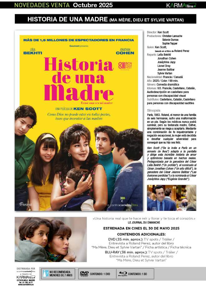 Ya están disponibles, en venta, los lanzamientos que Karma Films Video ha sacado al mercado este mes, tanto en Blu-ray y/o DVD. Títulos variados para que los cinéfilos puedan completar sus colecciones o adquirir esa película que estaban buscando. Además, como siempre para complementar las películas, los DVD y Blu-ray llevan unos contenidos adicionales, que hacen más interesante adquirir cualquiera de estas películas. En esta ocasión, entre los lanzamientos, podemos encontrar Tardes de soledad (Concha de Oro en San Sebastián 2024) e Historia de una madre (de Ken Scott).